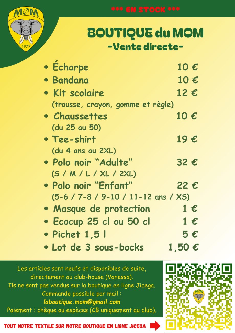 Sur la Boutique officielle du MOM, vous trouverez plus de 40 articles aux couleurs du club ! Pour satisfaire un plus grand nombre, nous avons choisi l’équipementier sportif Jicega.